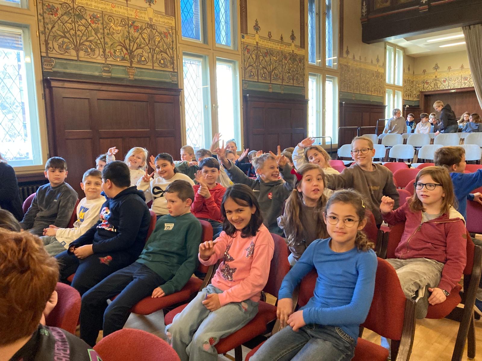 Bei frischen Temperaturen und strahlendem Sonnenschein machte sich die Klasse 3/4 am letzten Freitag mit ihren Lehrerinnen Frau Hüls und Frau Johann mit dem Bus auf ins Görreshaus nach Koblenz.